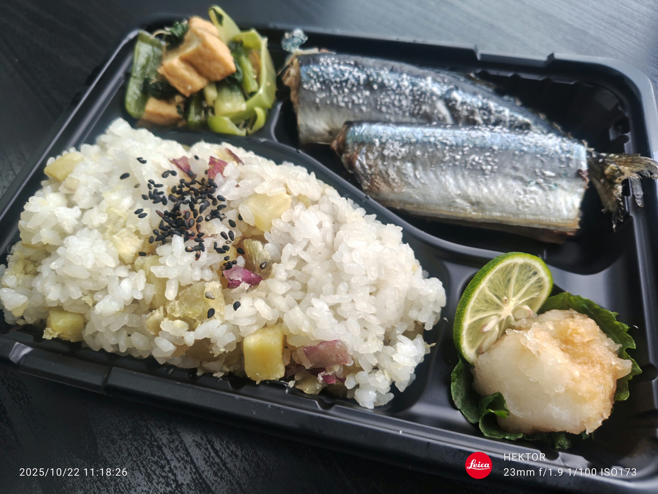 10月22日水曜日のお弁当は秋を感じられる「秋刀魚とサツマイモご飯弁当」です。ご来店お待ちしています。