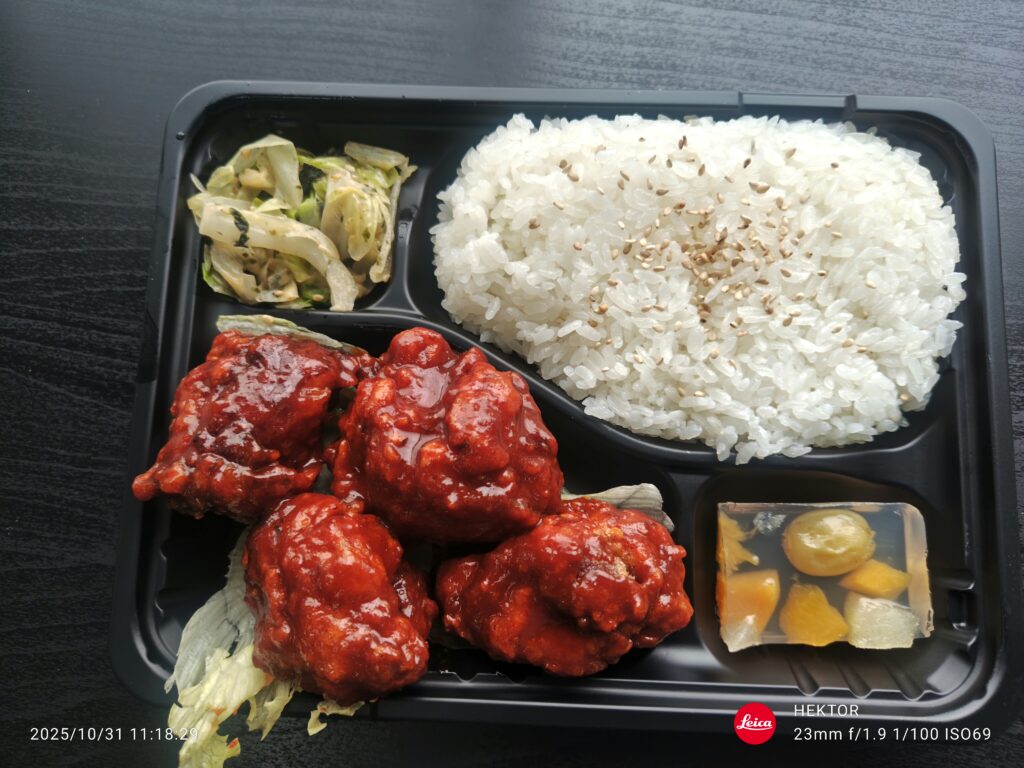 本日はヤンニョム鶏唐揚げ弁当 2025.10.31 10月31日金曜日はコムモアお弁当販売の日 本日は自慢の鶏唐揚げにヤンニョムダレをかけ、ちょっとピリ辛に仕上げました 251031111828189 ご来店お待ちしています