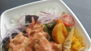 260227110941081「鶏唐揚げのコチュジャンマヨネーズ」弁当です。旨辛サッパリ味煮仕上げました。11時45分〜13時まで店頭にて販売いたします。ご来店お待ちしています。