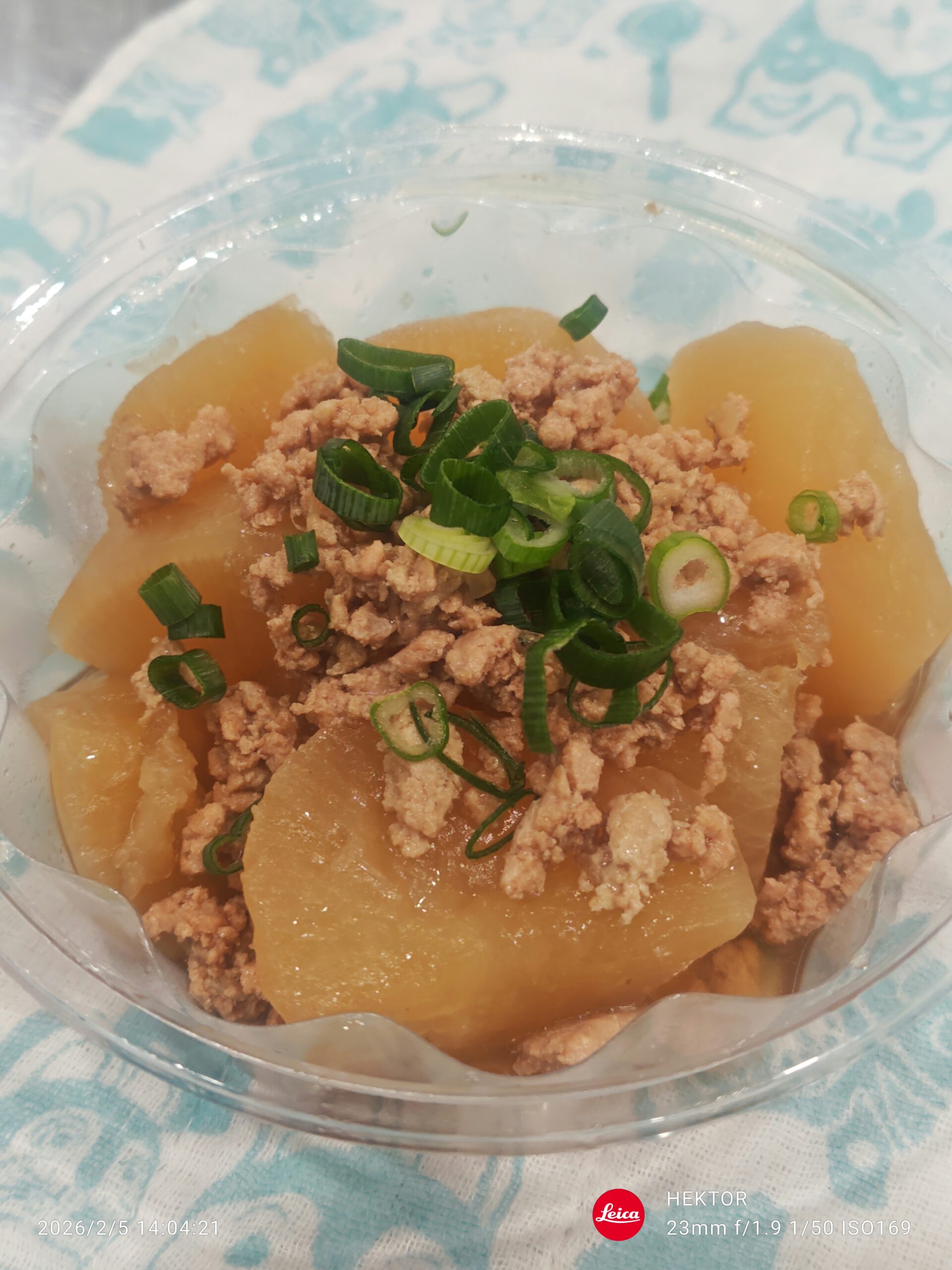 大根のそぼろ煮 2026.02.05 明日の葛飾区役所販売に、いつものお弁当に加えて、新商品のお惣菜「大根のそぼろ煮」¥250を限定5パックもっていきます。大根が味染み染みです。ぜひ御賞味下さい。 260205140420804