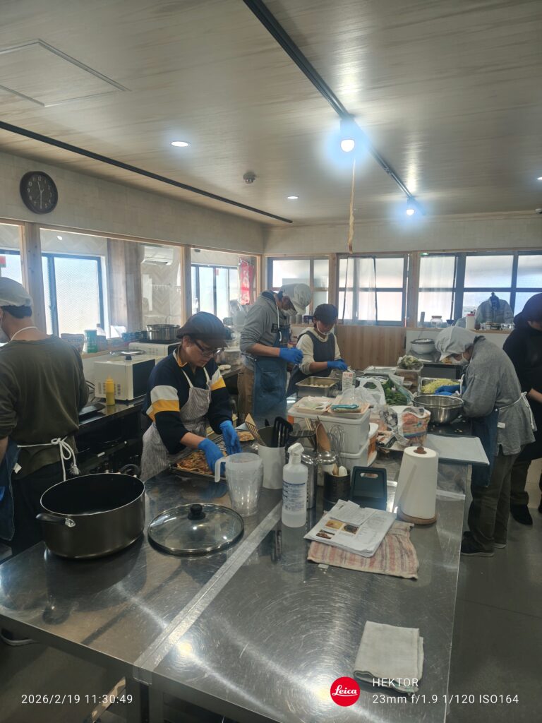 手分けしてキャベツの千切りやコロコロじゃがいもボール、ラタトゥイユを作っています。